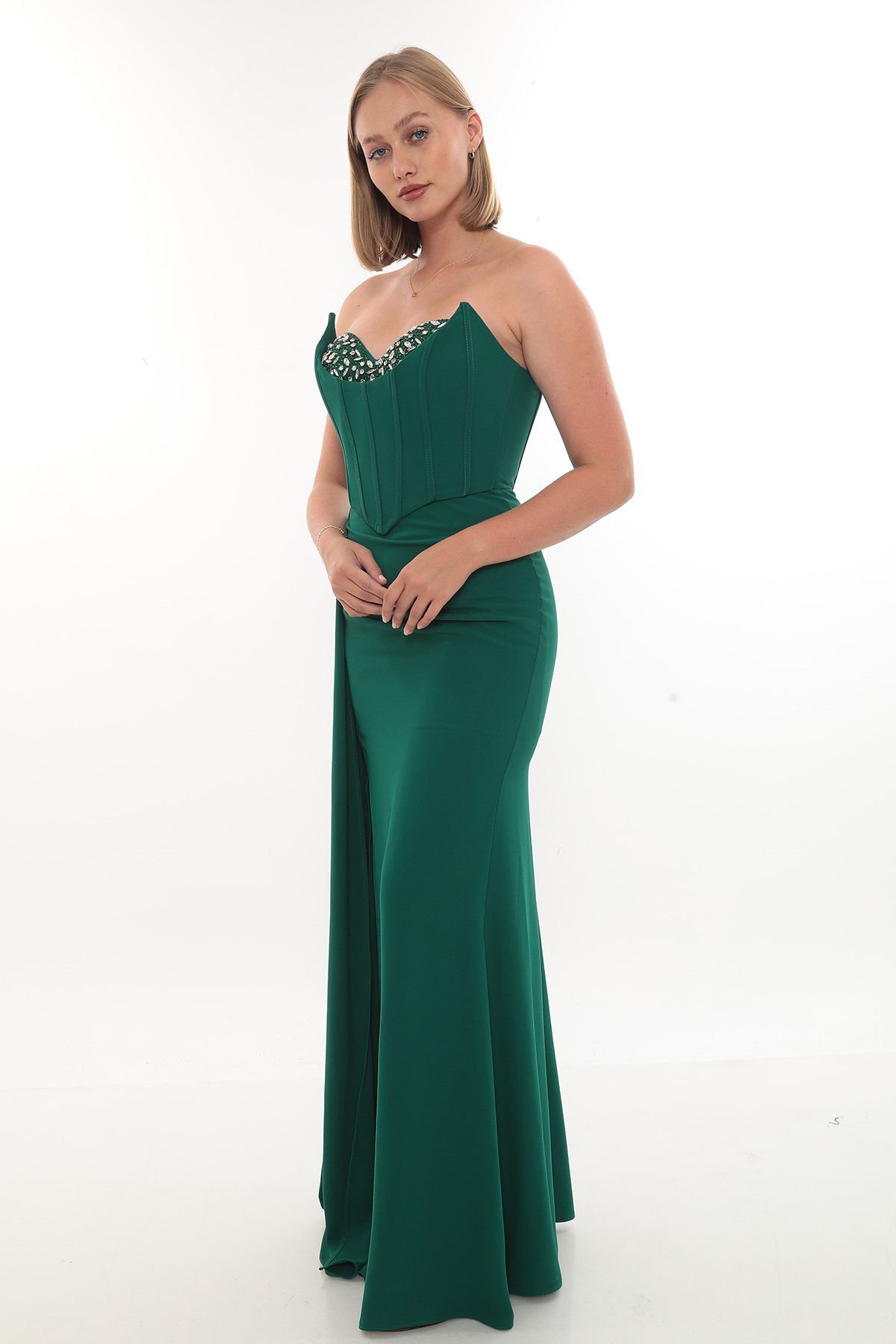 Experience elegance and style with this crepe fabric dress (Style 4040) in a stunning emerald green shade.