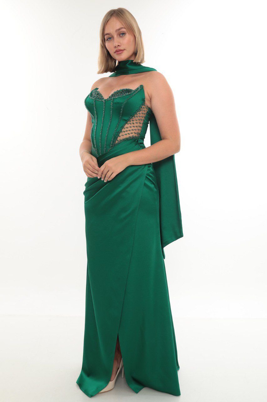 Elegant Satin Dress – Style 4010 (Emerald)